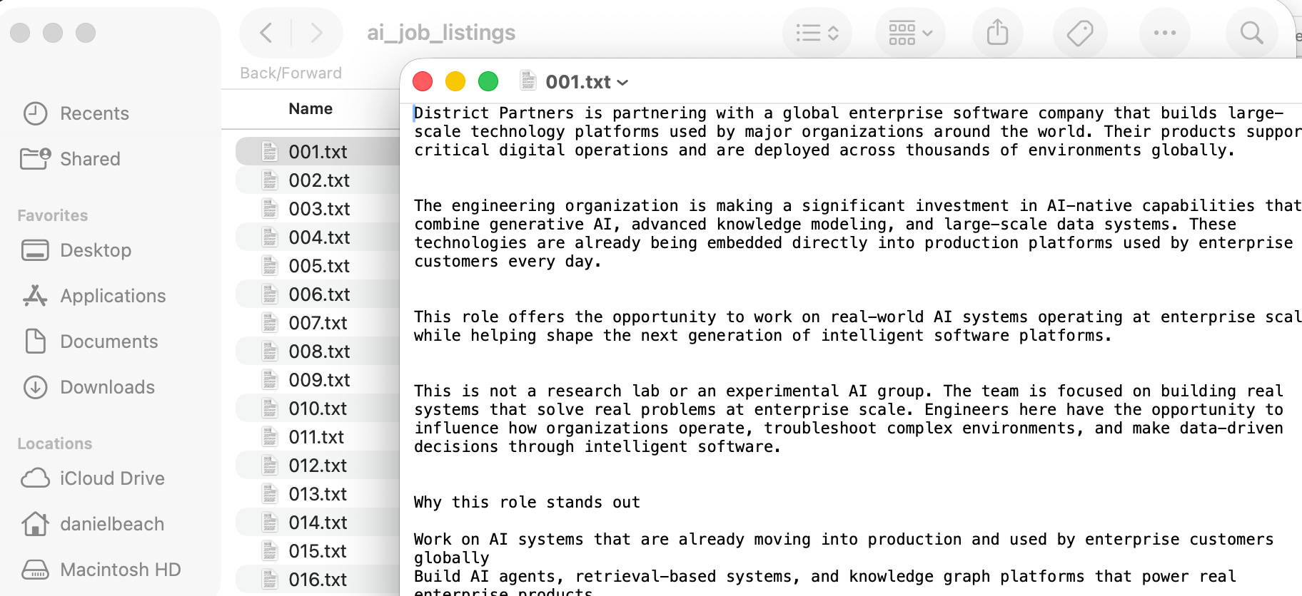 All this code, including the text data for the jobs, is here on GitHub. Enjoy.