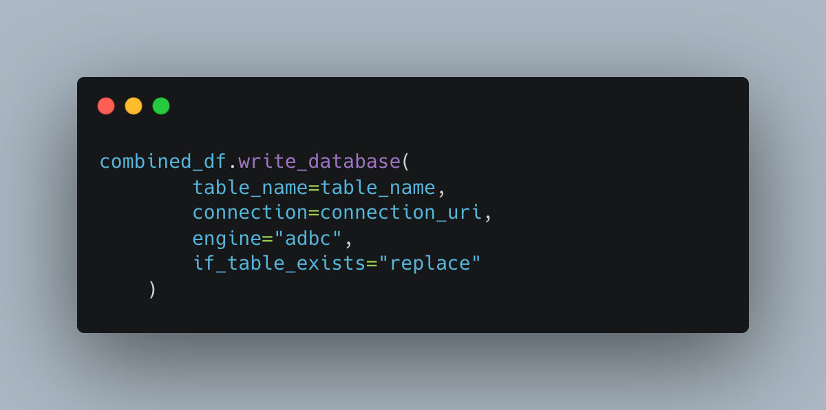 While we are at it, did you know that you can use Polars + the ADBC driver? Check the GitHub repo for the full code… basically, it uses ADBC in Polars.