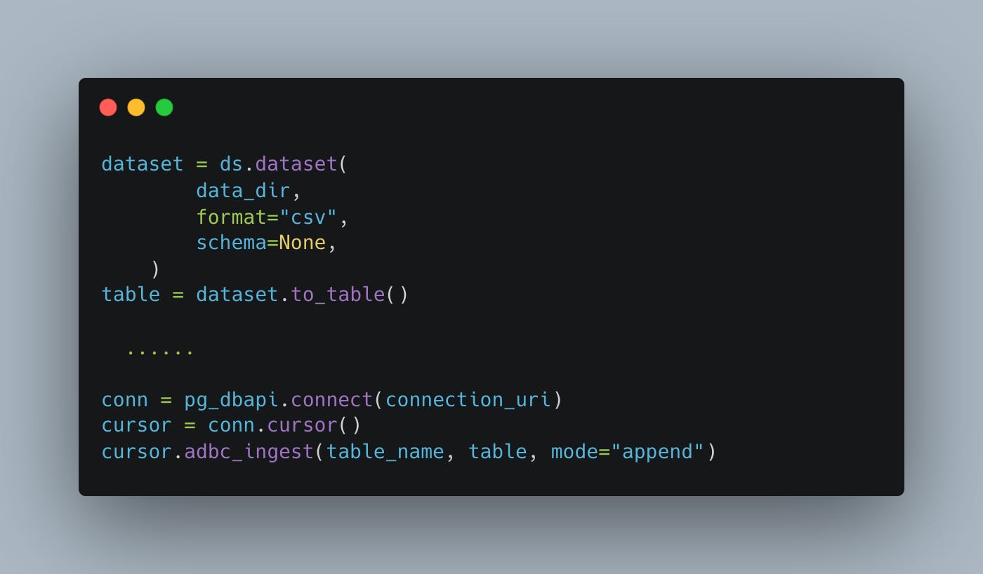 Really, if you get rid of all the fluff, the magic is in the simplicity of Arrow itself end to end, and also the ease of using the ADBC driver for Postgres.