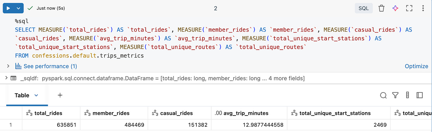Let’s make a Metric View based on our raw bike trip data, just to see how easy it is.