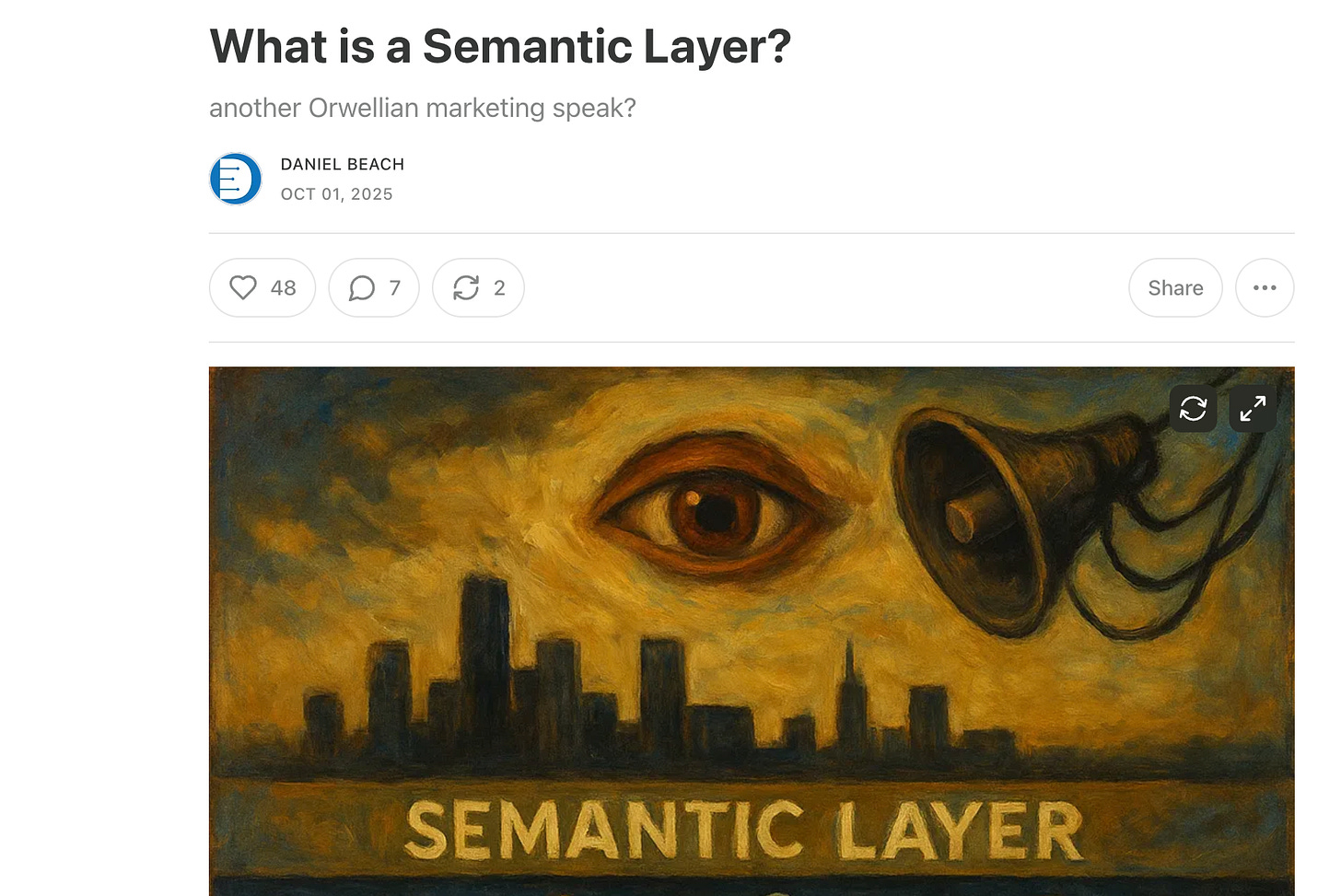 Sometimes includes transformations. Beyond that? Definitions diverge.Anywho, if Databricks believes in the Semantic Layer, I might as well hitch my wagon to that horse. I try not to bite the hand that feeds me; I can read the handwriting on the wall.
