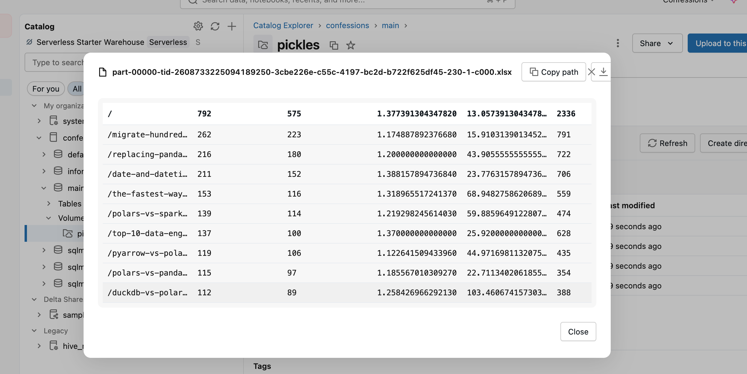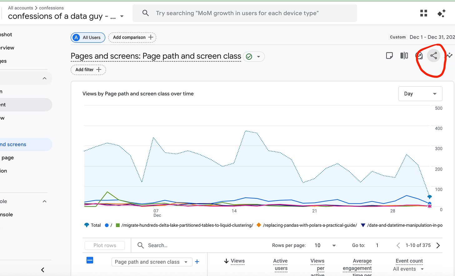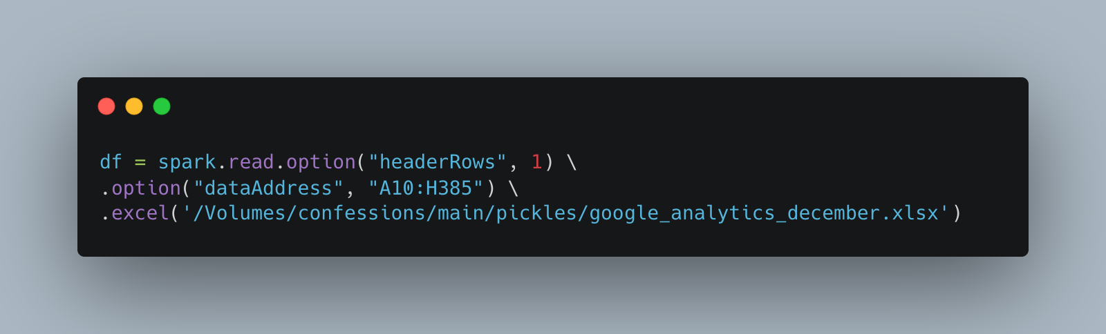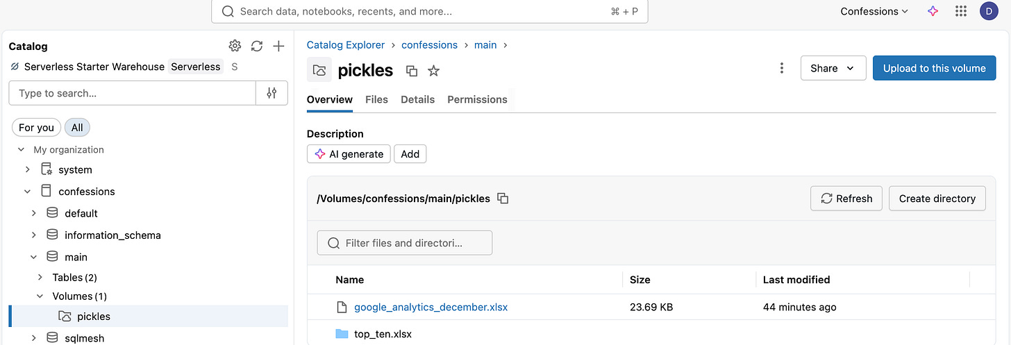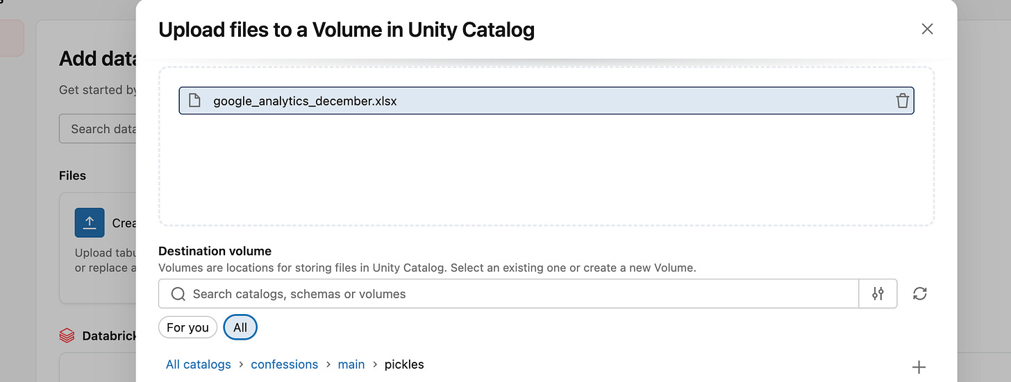 Databricks Runtime 17.1 or above.First, we should get a “normal” Excel file, something that comes from the real world and hasn't been massaged to work. I have run another blog, www.confessionsofadataguy.com, for many moons. We will download the December numbers from Google Analytics from that website. Raw, just as it comes in the Excel file download.