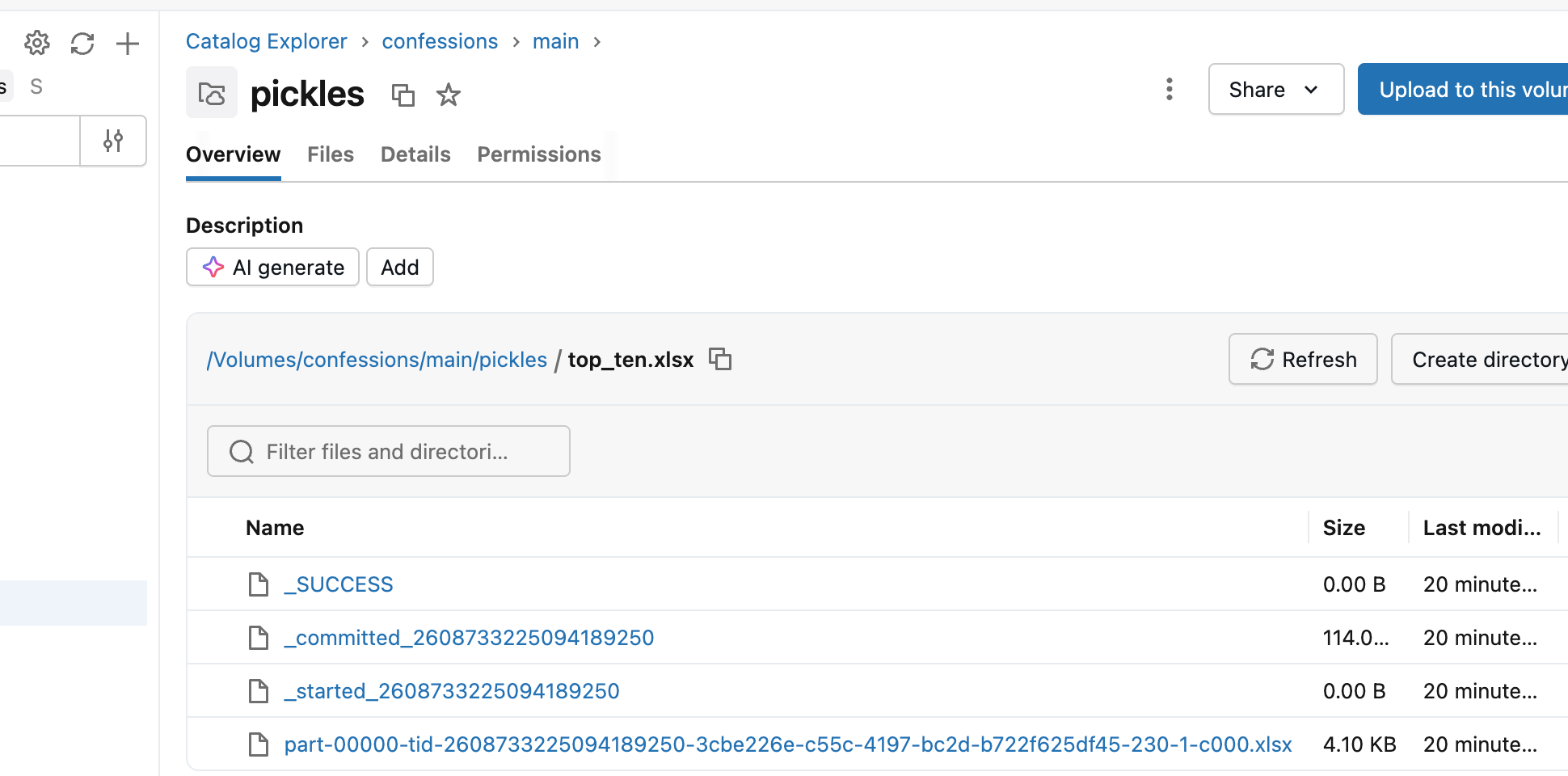 We just ordered our original Excel read Dataframe by views, limited it to the top ten, and wrote it back out as another Excel file. The file appears, although in the UI it shows as a folder.