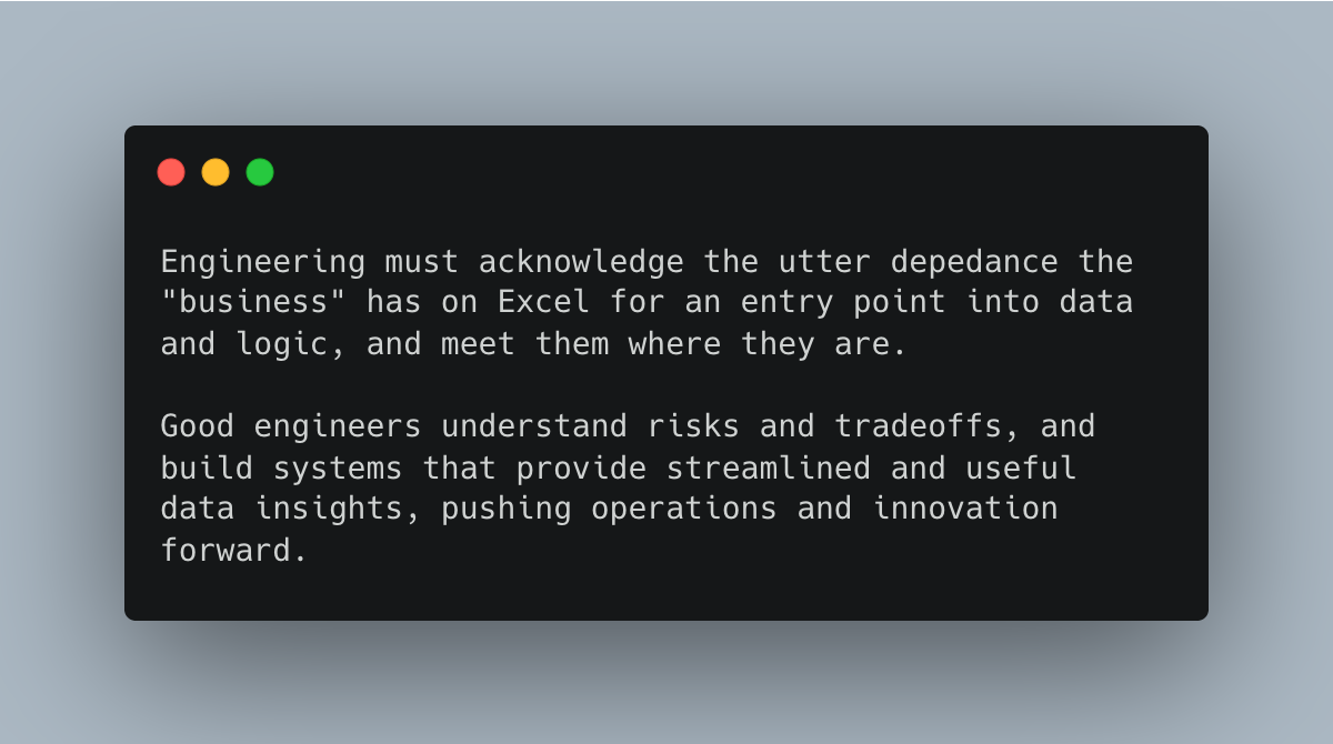 I’m sure there are three groups of Data Engineers when it comes to the Excel discussion.