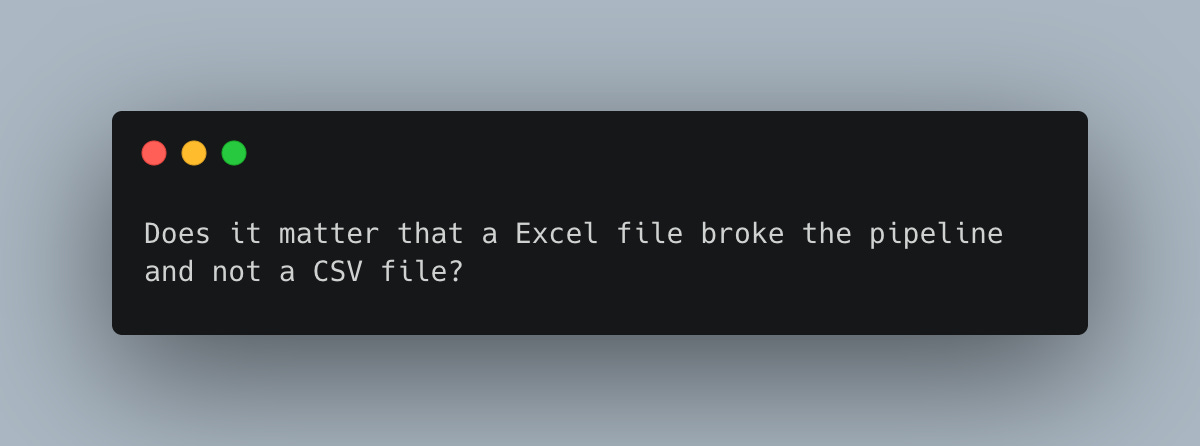 Data sources, regardless of format, break pipelines every hour, every day, 365 days a year, around the world. Excel, as a data source, will not change that; it might just make it a little worse.