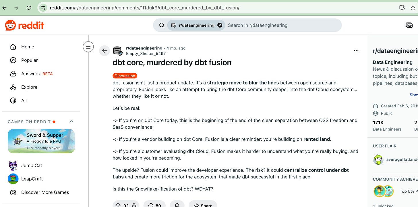 You can see the mad r/dataengineering Reddit mob, for once, can sniff out why this is happening.