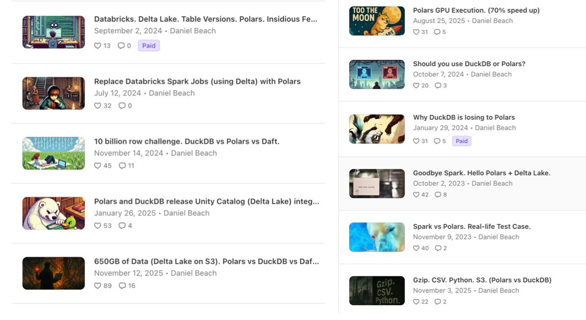 Come on, bro, this is just a small sampling of all the content I’ve written on Polars over the years, just a subset.