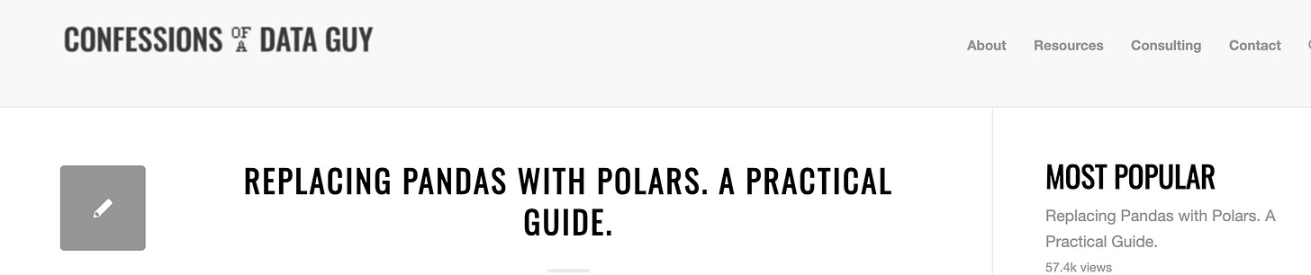 The proof is in the pudding, and one of the most popular articles I’ve written on my other blog was how to replace Pandas with Polars back in the Year of Our Lord 2023.