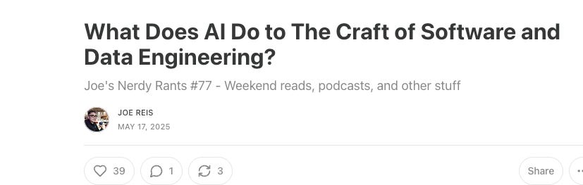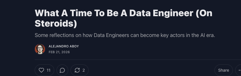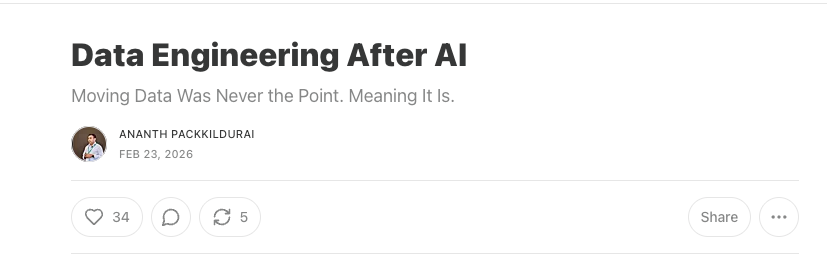 I’m going to try to give a fair shake to every side of the argument, as to whether AI will destroy Data Engineering and Software as we know it. First, I think it’s helpful to step back from the situation and say outloud that …