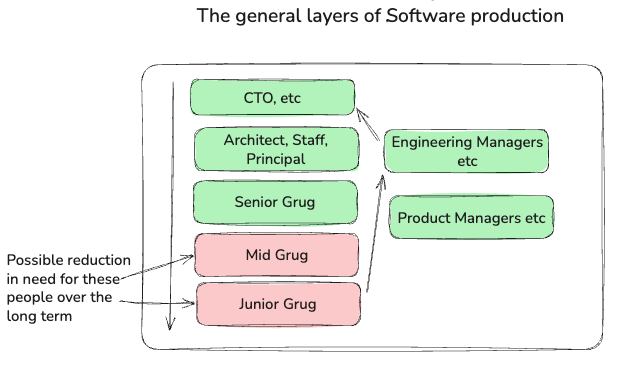 Let’s think about it from a Software and Engineering point of view. What are the levels and types of dev workers, and who is at risk of being replaced by AI?